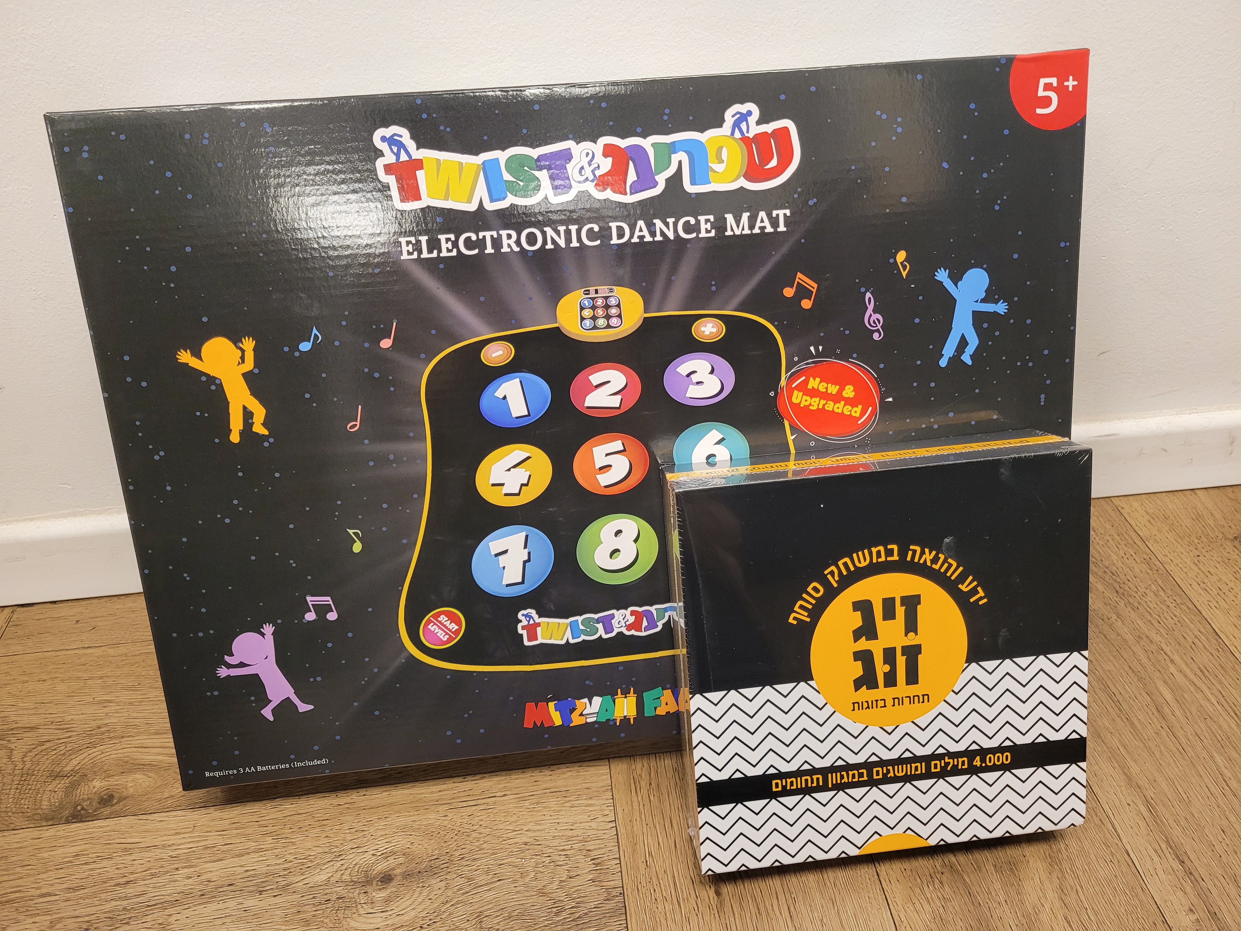 Two thousand games: Twist and Shpring Dance Mats and the Zig Zug word game - packed and ready to be distributed to 1,000 families in communities throughout Israel.